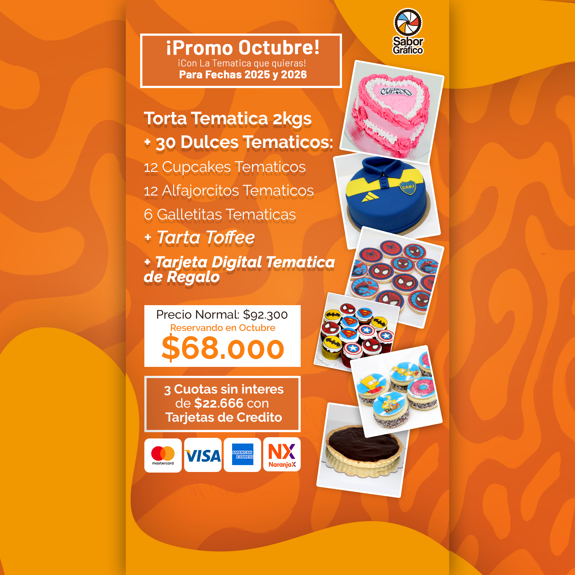 - El precio no contempla decoraciones complejas, detalles dorados, plateados o flúor.
